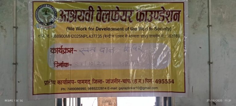 वार्ड क्रमांक 16, महात्मा गांधी वार्ड स्थित शासकीय हाई स्कूल अजनिया में नशा मुक्त भारत अभियान के अंतर्गत एक जागरूकता कार्यक्रम आयोजित किया गया। यह कार्यक्रम आश्रयवी वेलफेयर फाउंडेशन (भारत सरकार द्वारा मान्यता प्राप्त) द्वारा संचालित किया गया, जिसका उद्देश्य छात्रों और ग्रामीणों को नशे के दुष्प्रभावों से अवगत कराना था।